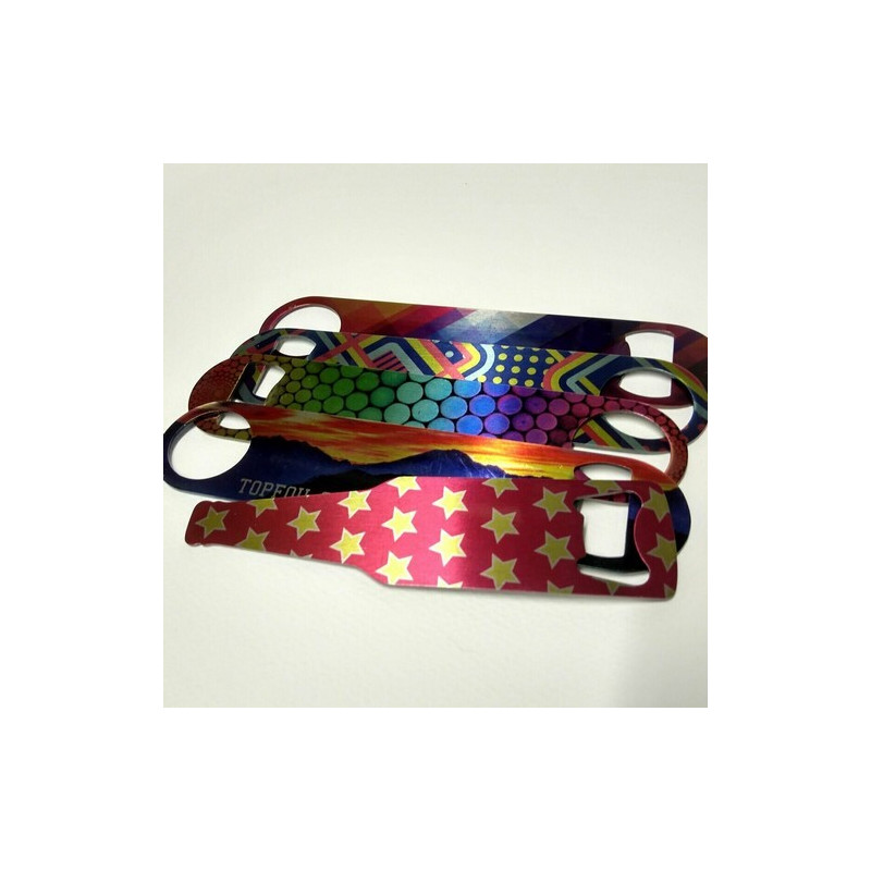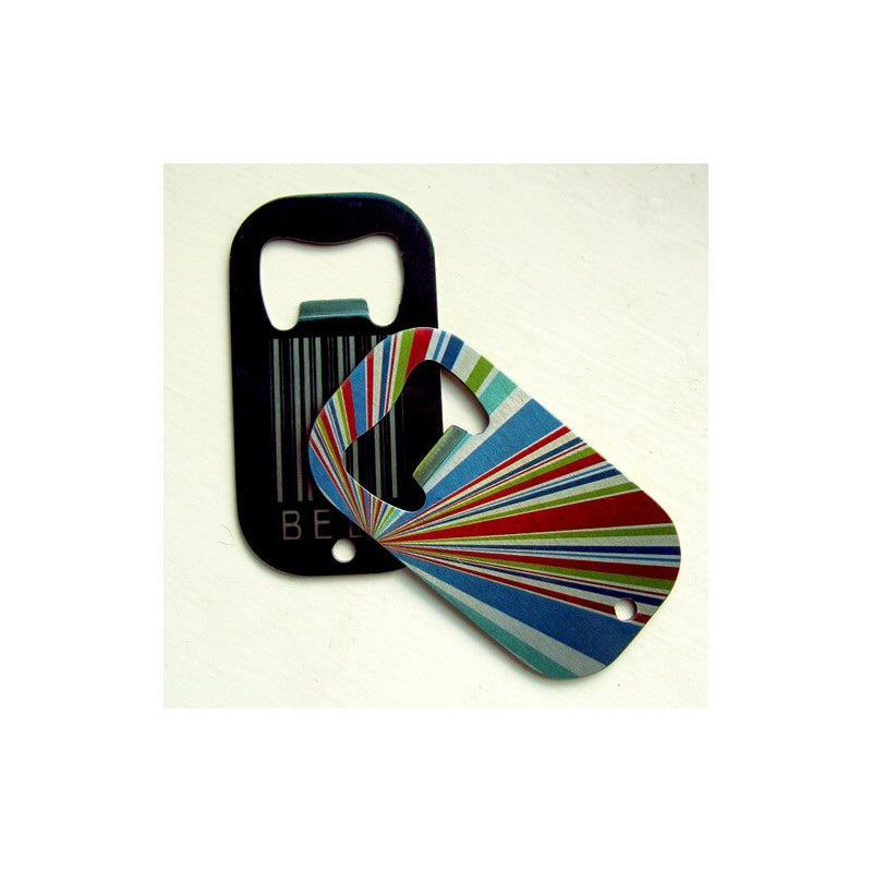 These stainless steel bottle openers are printed with your colour design or logo in a gloss finish, and are ideal as gifts as well as being great promotional items to give (or sell) to your customers.