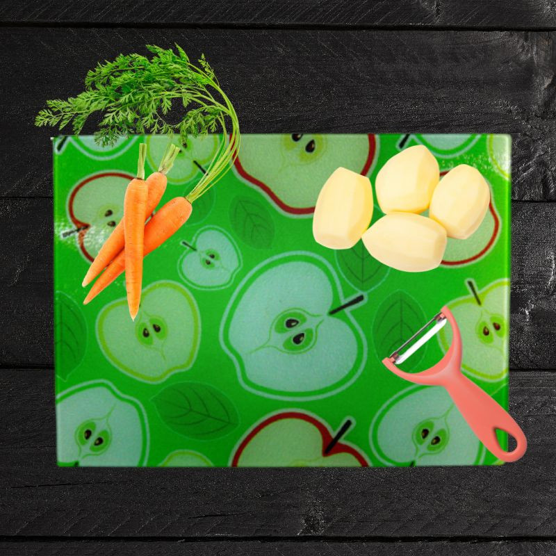 These glass rectangular chopping boards feature toughened chinchilla glass and edge-to-edge colour print.